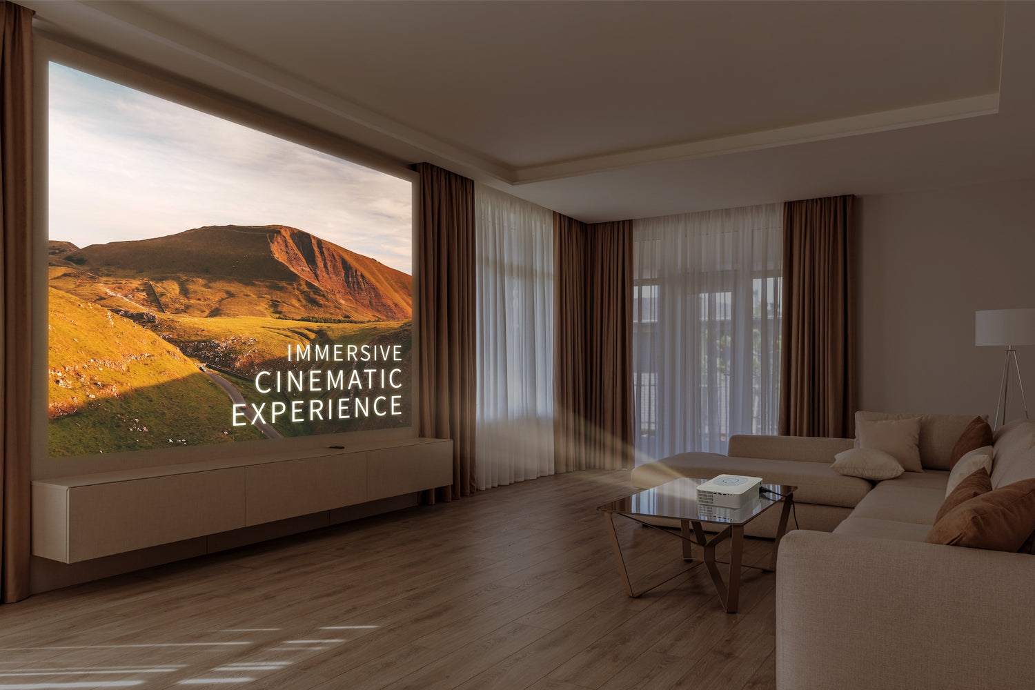 Easily project an image 100" (250cm) and beyond. Cinematic experience right at home.